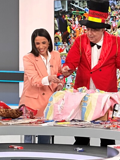 Γεύση του παραδοσιακού σοκολατοπόλεμου και φυσικά του Πατρινού Καρναβαλιού έδωσαν οι σοκολατορίχτες που επισκέφθηκαν το τηλεοπτικά κανάλια ΟΡΕΝ αυτή την Κυριακή