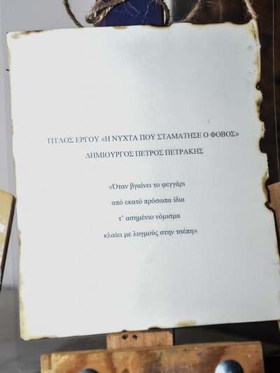 Παράλληλα, στο φουαγιέ του θεάτρου παρουσίασαν έργα τους εμπνευσμένα από την παράσταση οι παρακάτω μαθητές του τμήματος ζωγραφικής ενηλίκων του εκπαιδευτηρίου Kidit – Κέντρο Γλώσσας Πολιτισμού και Μελέτης με την επιμέλεια της δασκάλας τους Παναγιώτας Νικολάου: Μαρία Θεοδωροπούλου, Σημέλα Καράμπελα, Γωγώ Κοτέρη, Πέτρος Πετράκης, Αρετή Τζίφα και ο μικρός Θανάσης Ζησιμόπουλος.