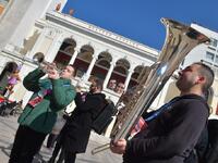 Με τα στοιχεία του λαϊκού και της παράδοσης να κυριαρχούν, το ρυθμό για το ξεφάντωμα έδιναν η «Μπάντα Χάλκινων», με καταξιωμένους δεξιοτέχνες μουσικούς της πόλης μας η οποία περπάτησε σε όλο το κέντρο, η Δημοτική Μουσική και το σύνολο πνευστών του Δημοτικού Ωδείου που έβαλε το δικό του μουσικό «χρώμα».