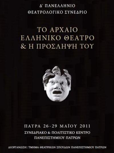 Το Τμήμα Θεατρικών Σπουδών του Πανεπιστημίου Πατρών διοργανώνει το Δ΄ Πανελλήνιο Θεατρολογικό Συνέδριο, από την Πέμπτη 26 έως και την Κυριακή 29 Μαΐου, στο Συνεδριακό Κέντρο του Πανεπιστημίου. Το θέμα του φετινού Συνεδρίου, το οποίο τελεί υπό την αιγίδα του Προέδρου της Δημοκρατίας κ. Κάρολου Παπούλια, είναι «Το αρχαίο ελληνικό θέατρο και η πρόσληψή του».