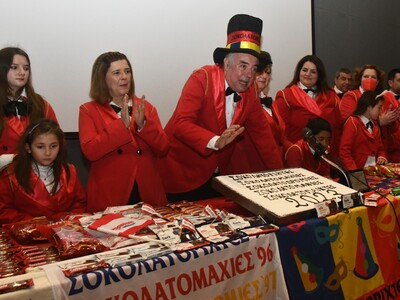 Οι σοκολάτες γλύκαναν τους παρευρισκόμενους που πήραν μια πρόγευση του τί θα επακολουθήσει από τη δράση των σοκολατοριχτών στις επόμενες μέρες της κορύφωσης του κεφιού με αρχή αύριο στην παρέλαση του Καρναβαλιού των Μικρών.