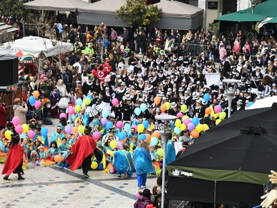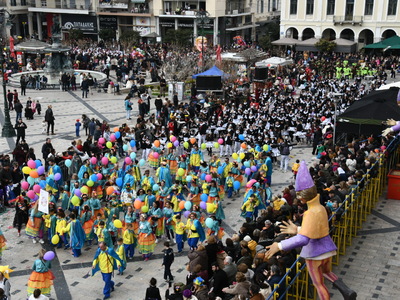 Πάνω από 15.000 μικροί καρναβαλιστές με συνοδούς κατανεμημένοι σε 95 ομάδες συμμετοχής, ξεπερνώντας κάθε προηγούμενο συμμετοχής και πλημμύρισαν τους κεντρικούς δρόμους της πόλης σκορπίζοντας παντού παιδικά χαμόγελα και ελπίδα.