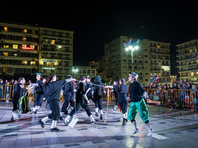 Η βραδιά του Πατρινού Καρναβαλιού έκλεισε σε μικρή απόσταση από την πλατεία, στις σκάλες Γεροκωστοπούλου όπου πραγματοποιήθηκε με μεγάλη επιτυχία η δεύτερη παράσταση της ομάδας «ΣΦήγΚΕΣ». Ένα μοναδικό μουσικοχορευτικό υπερθέαμα, φαντασμαγορικό, με κωμικές στιγμές, αλλά κυρίως αυθεντικά καρναβαλικό σε σκηνοθεσία Βικτωρίας Αγγελοπούλου που διοργανώθηκε από την Περιφέρεια Δυτικής Ελλάδας με την υποστήριξη της ΚΕΔΗΠ-Καρναβάλι Πάτρας και που προκάλεσε τον θαυμασμό πλήθους κόσμου.