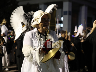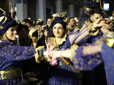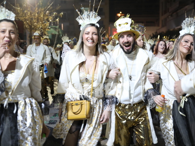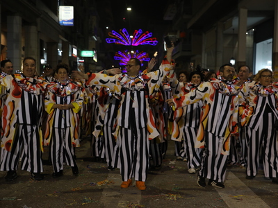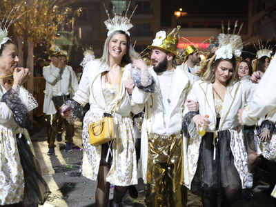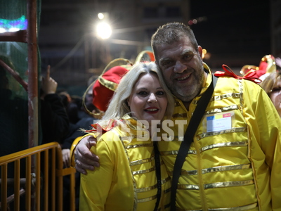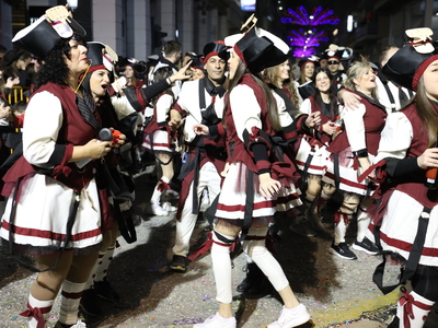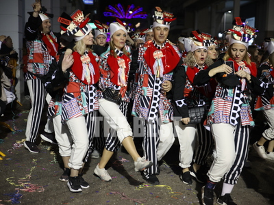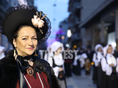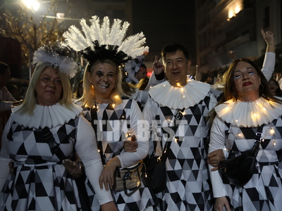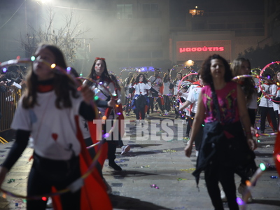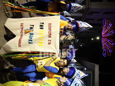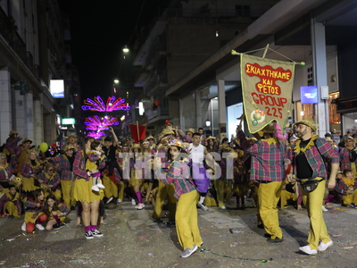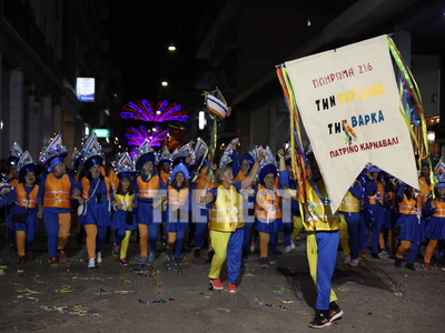 Στη νυχτερινή παρέλαση του Σαββάτου, που λέγεται και ποδαράτη επειδή δεν παρουσιάζονται οι κατασκευές και τα άρματα των πληρωμάτων αλλά μόνο τα μέλη τους με τις στολές τους. Ένα φαντασμαγορικό θέαμα ξετυλίχθηκε στην οδό Κορίνθου και στην πλατεία Γεωργίου Α΄ με τους φωτισμούς, τη γρήγορη ροή, τα χρώματα και το κέφι να δίνουν λάμψη και μεγαλοπρέπεια στη νύχτα του τελευταίου Σαββάτου του Πατρινού Καρναβαλιού.