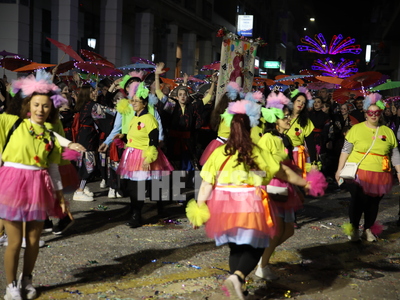 Η παρέλαση ξεκίνησε στις 18:00 με τους καρναβαλιστές να διασχίζουν την οδό Κορίνθου και να χαρίζουν μοναδικές εικόνες