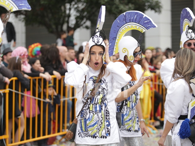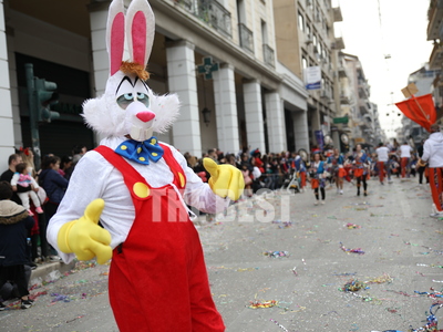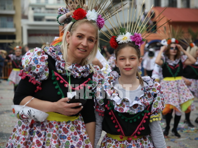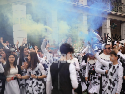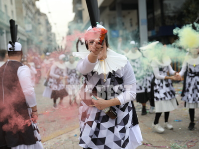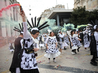 Σαν πολύχρωμο ποτάμι έμοιαζαν οι καρναβαλιστές που ξεχύθηκαν στους δρόμους της Πάτρας στη μεγάλη παρέλαση της Κυριακής.