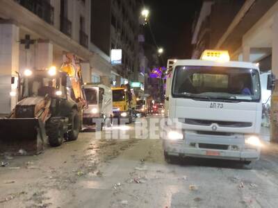 Με τη λήξη της μεγάλης παρέλασης της Κυριακής και πριν γίνει η καύση του βασιλιά Καρνάβαλου, τα συνεργεία του Δήμου της Πάτρας έσπευσαν να απομακρύνουν τα αμέτρητα σκουπίδια από το κέντρο της πόλης.