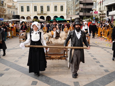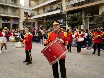 "Στην κεφαλή της παρέλασης η πρόεδρος της ΚΕΔΗΠ-Καρναβάλι Πάτρας Ήρα Κουρή, τα μέλη του Δ.Σ. της ΚΕΔΗΠ, τα μέλη της Γνωμοδοτικής και Κριτικής Επιτροπής του Καρναβαλιού 2023, η Δημοτική Μουσική σε παιάνες αποκριάτικους και καρναβαλικά τραγούδια, οι μαζορέτες από τη σχολή χορού «Keep Dancing» της Μίνας Παναγιωτοπούλου και τα άρματα του Δήμου με προεξέχοντα τον Προπομπό, τον Βασιλιά Καρνάβαλο, το άρμα της Βασίλισσας και το Άνθινο άρμα που φιλοξένησαν αντίστοιχα τη Βασίλισσα του Πατρινού Καρναβαλιού 2023 Κατερίνα Βενέρη Σιούλη και τη Βασίλισσα των τριών προηγούμενων χωρίς παρέλαση Καρναβαλιών, Μαρία Κυριακοπούλου.
