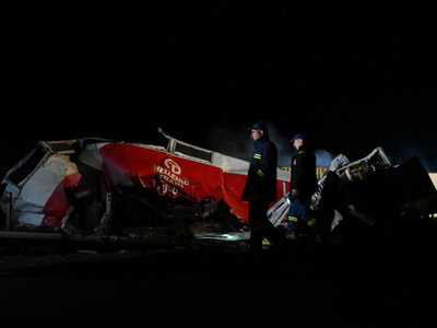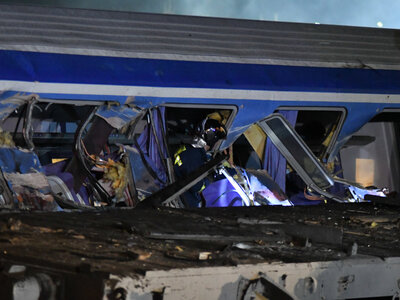 Τα φωτογραφικά στιγμιότυπα απαθανατίζουν το μέγεθος της καταστροφής, όπως και τις προσπάθειες που καταβάλουν οι πυροσβέστες μέσα στα διαλυμένα βαγόνια συνεχίζοντας την πολύωρη επιχείρηση απεγκλωβισμού: