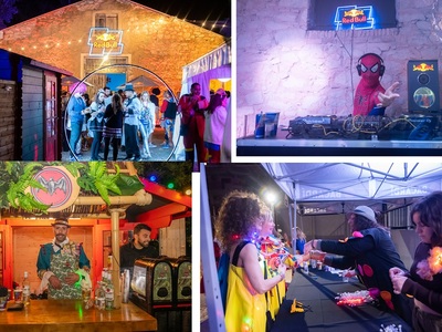 Στήθηκαν 4 stages: main stage, εξωτερική carnival tent, glow box με black light εφέ, red bull silent disco (άκουγαν μέσα από ακουστικά και με το πάτημα ενός κουμπιού επέλεγαν έναν από τους δυο Dj’s)
