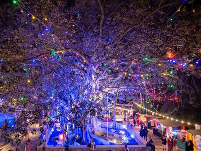 Μια πραγματική υπερπαραγωγή, γεμάτη εκπλήξεις και καινοτομίες με στοιχεία φιέστας ή φεστιβάλ, «μοιρασμένο» σε corners, τέντες ή πέτρινες σάλες και γύρω από το περίφημο και συναρπαστικά φωταγωγημένο δέντρο ban yan. Aκόμα μια φορά. το καθιερωμένο «Πάρτι των πληρωμάτων- Η κλασική συνταγή» στον πολυχώρο 5E της παραλιακής κατέπληξε άπαντες, αυξάνοντας μάλιστα την απήχησή του. Αλλωστε είναι κάτι μοναδικό για την πόλη. Προσέλκυσε πάνω από 2000 άτομα, τα οποία ξεφάντωσαν από τις 8 το βράδυ μέχρι και τις 8 το πρωί! Οι εντυπώσεις μιλούν για ένα «χωριό» με γευστικά κιόσκια και εκρηκτικές χορευτικές πίστες ανάμεσα σε λαμπιόνια, κορδέλες, ξυλοπόδαρους. Για απίστευτα θεαματικά φωτορυθμικά και για απαράμιλλο κέφι που ήταν αμείωτο ως το ξημέρωμα.