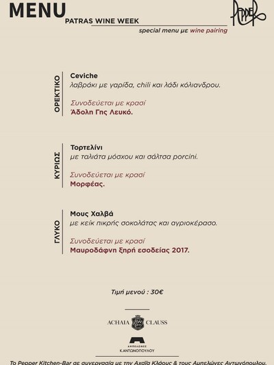 Όπως πληροφορηθήκαμε από τους ιδιοκτήτες του εστιατορίου, στηρίζουν με την συμμετοχή τους την καινοτόμα πρωτοβουλία της οινικής εβδομάδας Patras Wine Week βρίσκεται εν εξελίξει.