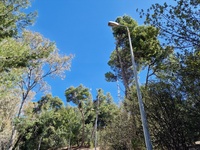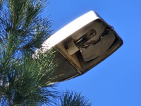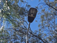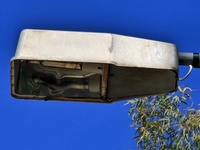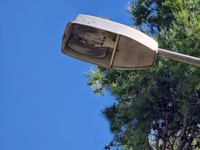 Οι λαμπτήρες στις κάσες των φωτιστικών μέσων είναι είτε καμμένοι, είτε (σκόπιμα;;;) κατεστραμμένοι. Από σχεδόν όλα τα φωτιστικά μέσα στις κολώνες ηλεκτροφωτισμού λείπουν οι καλύπτρες, κάτι που αφήνει τις λάμπες εκτεθειμένες σε υγρασία και βροχή.