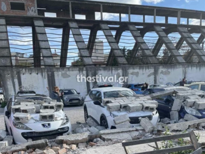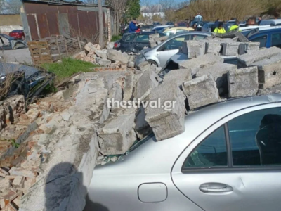 Σύμφωνα με πληροφορίες, η πτώση του τοιχίου προκάλεσε φθορές σε 12 σταθμευμένα αυτοκίνητα σε οικόπεδο που βρίσκεται πλησίον του Αστυνομικού Μεγάρου Θεσσαλονίκης.