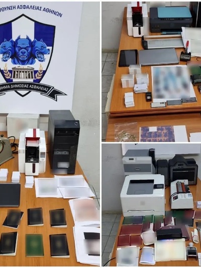 περισσότερα από 500 κατασχεθέντα ταξιδιωτικά έγγραφα ταυτοποίησης ξένων και ελληνικών αρχών (διαβατήρια, ταυτότητες, άδειες διαμονής, άδειες ικανότητες οδηγήσεως, κάρτες αιτήσεων ασύλου αλλοδαπών κ.τ.λ.), τα οποία είναι καταφανώς αμφιβόλου γνησιότητας,