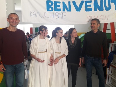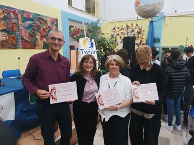 Το μεσημέρι φτάσαμε στην πόλη Bernalda της ίδιας περιφέρειας και στο Istituto Comprensivo Pitagora, όπου χαρήκαμε μια υπέροχη υποδοχή που μας είχε ετοιμάσει η εκεί συντονίστρια του προγράμματος, κ.Patrizia Petrocelli, μαζί με τη Δ/ντρια του σχολείου, όλο το υπόλοιπο εκπ/κό προσωπικό, τους μαθητές/τριες και τους γονείς τους, με χορούς, έναν πλούσιο μπουφέ από τοπικά εδέσματα και πολλά δώρα για όλους μας.