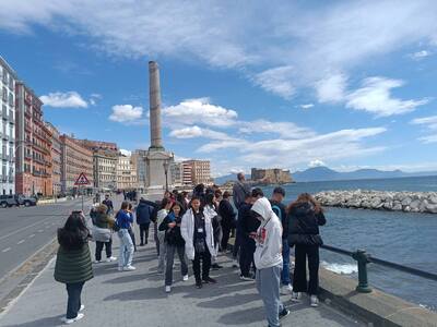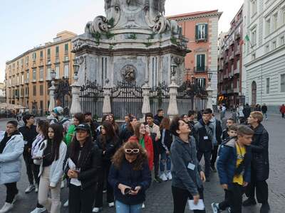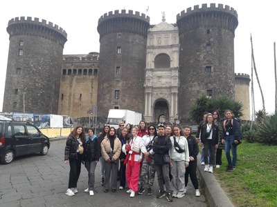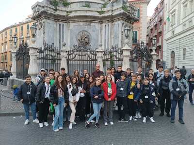 Μετά από πολύωρο αλλά ιδιαίτερα ευχάριστο ταξίδι στο πλοίο, κατά τη διάρκεια του οποίου κάναμε και τις τελευταίες πρόβες για την παρουσίαση της δουλειάς μας, πατήσαμε το πόδι μας στη γείτονα Ιταλία, και συγκεκριμένα στο λιμάνι του Bari, το πρωί της Κυριακής, 26-3-2023. Πρώτος σταθμός, η περίφημη Νάπολη! Αφού ξεκουραστήκαμε λίγο το μεσημέρι, ξεκινήσαμε το απογευματάκι για μια βόλτα στο ιστορικό κέντρο της πόλης. κατά την οποία είδαμε μεγάλες πλατείες, μία από τις οποίες φιλοξενεί τον τεράστιο σταθμό του μετρό της πόλης, υπέροχα παλιά κτήρια, γραφικά στενά δρομάκια με κρεμασμένες από τα μπαλκόνια των σπιτιών μπουγάδες αλλά και σημαίες και κορδέλες με τα χρώματα της ομάδας της Νάπολη, την περίφημη Gallery της Νάπολη και πολλές επιβλητικές εκκλησίες, δύο από τις οποίες επισκεφτήκαμε, αυτές των S.S. Philippo e Giacomo και του Ιησού Χριστού. Η μέρα μας ολοκληρώθηκε με ένα γευστικότατο γεύμα στο ξενοδοχείο που μας φιλοξενούσε, με τοπικές χαρακτηριστικές γεύσεις!