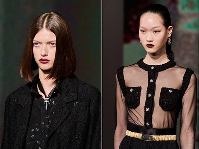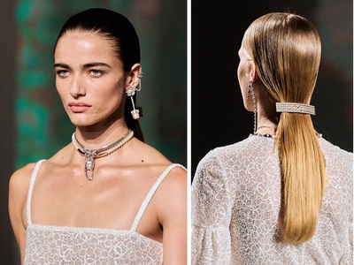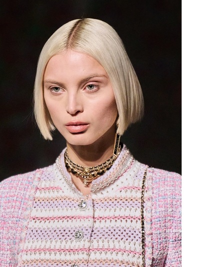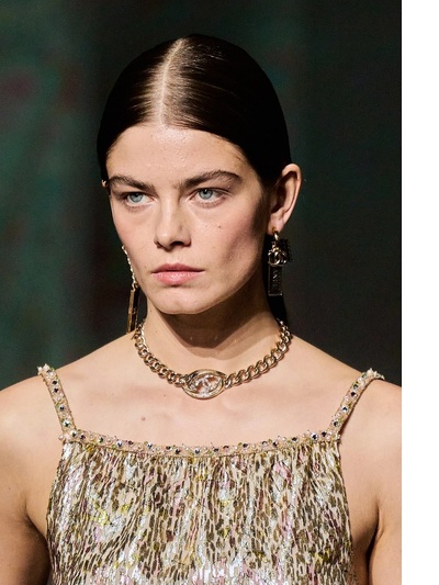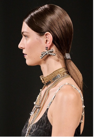 Τα χτενίσματα περιορίστηκαν σε «καρέ» πολύ γεωμετρικά, σε μαζεμένα μαλλιά χαμηλά προς τα πίσω ή στυλιζαρισμένα σαν βρεγμένα. Το να δείχνει η επιφάνειά τους λεία και στιλπνή ώστε να γυαλίζει ήταν προτεραιότητα. Ισιωμα; Απαραίτητο. To μήνυμα είναι πως δείχνουμε ωραίες όπως πραγματικά είμαστε. Τουλάχιστον αν θέλετε να δείχνετε Chanel girl της σαιζόν, ειδάλλως ακολουθείτε διαφορετικούς δρόμους.