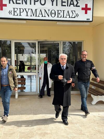 Επίσης ο κ. Ανδρικόπουλος επισκέφθηκε και το Κέντρο Υγείας του Δήμου Ερυμάνθου, όπου ενημερώθηκε ότι μεταξύ των άλλων προβλημάτων , τα περιστατικά νοσηλείας στο νοσηλευτικό κέντρο κι τα έκτακτα περιστατικά, δεν είναι δυνατό να εξυπηρετηθούν λόγω υποστελέχωσής του. Όλοι οι ασθενείς παραπέμπονται είτε στο Π.Γ.Ν.Π, είτε στο Γενικό νοσοκομείο Πατρών " Ο Άγιος Ανδρέας" .