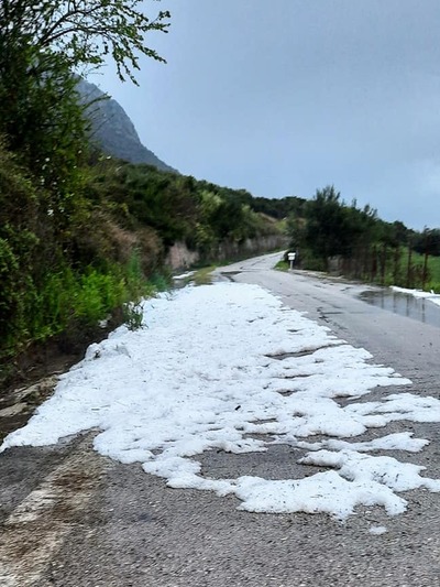 Ισχυρή χαλαζόπτωση σημειώθηκε το απόγευμα της Δευτέρας στην περιοχή της δυτικής-νοτιοδυτικής Αχαΐας με το χαλάζι να στρώνεται κυριολεκτικά στους δρόμους.