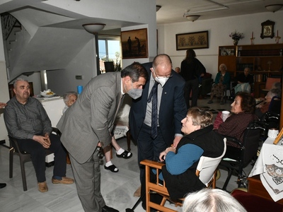 Αρχικά ο κ. Πελετίδης και η κ. Σαμούρη επισκέφθηκαν το Άσυλο Ανιάτων, στην πλατεία απέναντι από το ναό του Παντοκράτορα και αμέσως μετά την Κιβωτό της Αγάπης. Κατόπιν επισκέφθηκαν το Καραμανδάνειο Νοσοκομείο Παίδων, την Μέριμνα κοντά στο Γηροκομειό και τους οίκους ευγηρίας, Κωνσταντοπούλειο και Αγία Σκέπη που λειτουργούν στην ίδια περιοχή.