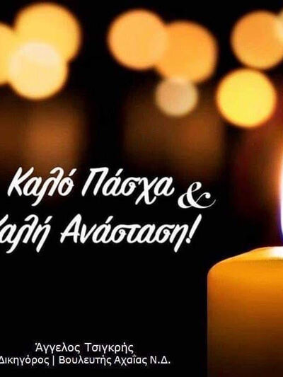 Ο βουλευτής Αχαΐας της Νέας Δημοκρατίας και καθηγητής της Εγκληματολογίας Άγγελος Τσιγκρής , με αφορμή τις Άγιες Ημέρες του Πάσχα, απέστειλε το ακόλουθο μήνυμα:
