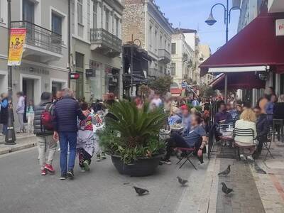 Σήμερα Μεγάλη Παρασκευή, τα καταστήματα άνοιξαν στη 1 το μεσημέρι και πολύς κόσμος κατέβηκε στο κέντρο της πόλης, είτε για βόλτα και καφέ, είτε για αγορές της τελευταίας στιγμής.