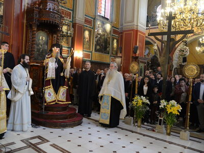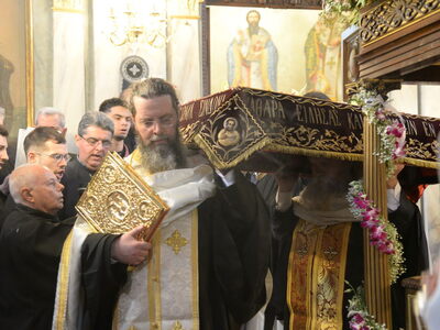 • Ὁ Θεοφιλέστατος Ἐπίσκοπος Κερνίτσης κ. Χρύσανθος, κατά τήν Ἀκολουθία τῆς Ἀποκαθηλώσεως ἐχοροστάτησε στόν Ἱερό Ναό τοῦ