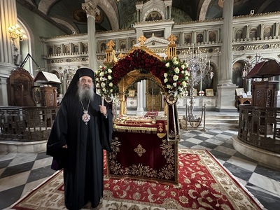 Ὁ Σεβασμιώτατος Μητροπολίτης Πατρῶν κ.κ. Χρυσόστομος, ἐχοροστάτησε στόν Ἑσπερινό τῆς Ἀποκαθηλώσεως στόν Ἱερό Μητροπολιτικό Ναό Εὐαγγελιστρίας Πατρῶν, ὃπου ἀπευθυνόμενος στά πλήθη τῶν Χριστιανῶν, ἀνέλυσε τόν συγκλονιστικό λόγο τοῦ Ἁγίου Ἐπιφανίου, στήν Ἀποκαθήλωση τοῦ Κυρίου, ὃπου ὁ ἱερός Πατήρ, ἒκθαμβος συμμετέχει μυστικά στά τελούμενα καί μακαρίζει τόν Ἰωσήφ πού μέ τά χέρια του κατεβάζει τό Ἂχραντο Σῶμα τοῦ Κυρίου ἀπό τόν Σταυρό, πού μέ μάτια του βλέπει νεκρό τόν Κύριο, πού μέ τό στόμα του καταφιλεῖ τοῦ Σωτῆρος τό κατάστικτον τοῖς μώλωψι πρόσωπο, πού στούς ὣμους του μεταφέρει τόν Κύριο στό κενό μνημεῖο.