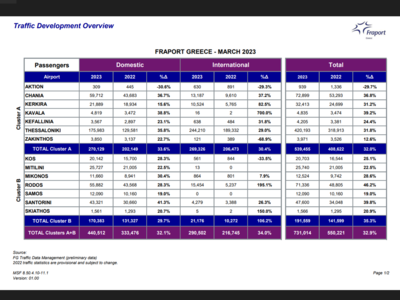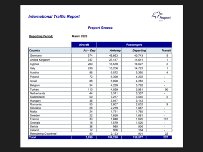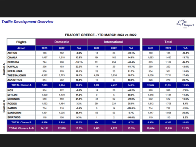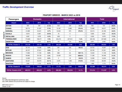 Η εικόνα που κατέγραψαν τον Μάρτιος τα 14 περιφερειακά αεροδρόμια που διαχειρίζεται η Fraport (Ακτιο, Χανιά, Κέρκυρα, Καβάλα, Κεφαλονιά, Θεσσαλονίκη, Ζάκυνθος, Κως, Μυτιλήνη, Μύκονος, Ρόδος, Σάμος, Σαντορίνη, Σκιάθος) είναι καλύτερη σε σχέση με το 2019.