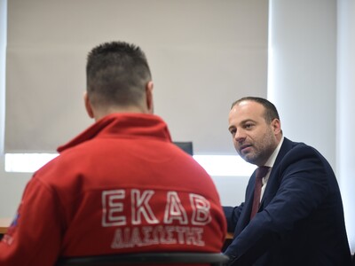 Στη συνάντηση παρευρέθηκε και ο πρόεδρος των εργαζομένων του ΕΚΑΒ Αλέξης Κουτσούκος.