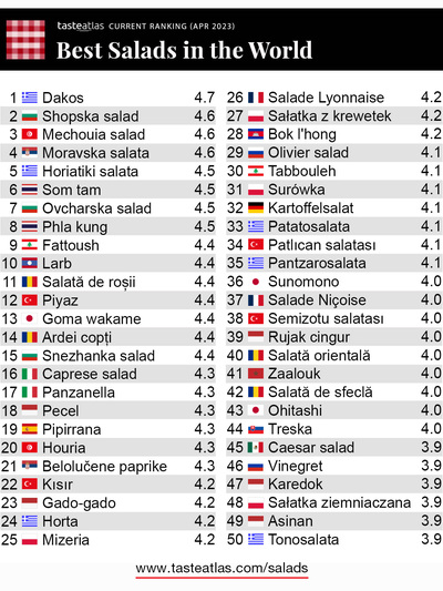 Πρόκειται για τις σαλάτες, οι οποίες σαρώνουν την αντίστοιχη λίστα του TasteAtlas, ενός από τους πιο δημοφιλείς οδηγούς για φαγητό παγκοσμίως.