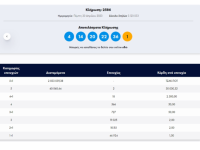 Οι τυχεροί αριθμοί, στη σημερινή κλήρωση Τζόκερ είναι οι εξής: 4, 14, 20, 22, 36 και Τζόκερ το 1.