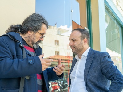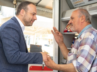 Ο υποψήφιος βουλευτής Αχαϊας του ΣΥΡΙΖΑ-ΠΣ Θεμιστοκλής- Ανδρέας Μπάκας επισκέφθηκε την αγορά του Αιγίου, συνοδευόμενος από τον πρόεδρο του Εμπορικού Συλλόγου της πόλης Λάμπη Παπαδόπουλο.