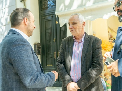 Συνοδευόμενος από τον πρόεδρο του Εμπορικού Συλλόγου της πόλης Λάμπη Παπαδόπουλο