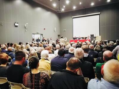 Στην εκδήλωση παρουσίασης του βιβλίου του πρώην Υπουργού οικονομικών Ευκλείδη Τσακαλώτου με τίτλο «Με την πλάτη στον τοίχο», με ομιλητές την υποψήφια βουλευτή Αχαΐας με τον ΣΥΡΙΖΑ, Σία Αναγνωστοπούλου, τον Πάνο Σκουρλέτη και συντονιστή τον Κώστα Σπαρτινό.