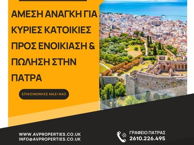 Κατά αυτόν τον τρόπο, εάν θέλετε να πουλήσετε ή να ενοικιάσετε το ακίνητό σας, μη διστάσετε να επικοινωνήσετε με τα έμπειρα στελέχη της AV Properties στα 2610226495 και 6937 156547 ή μέσω email στο [email protected], για να κανονίσετε το δικό σας ραντεβού.