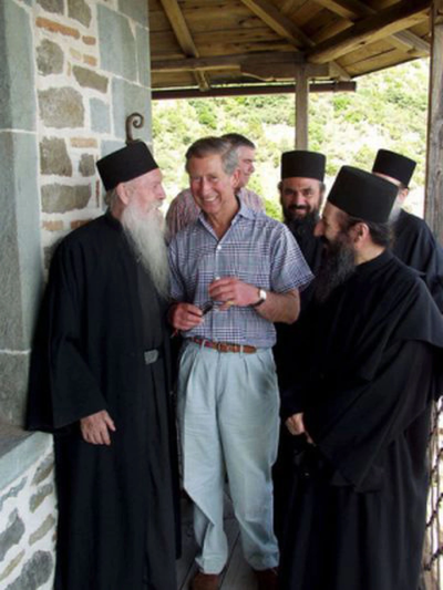 Ξεχωριστή σημασία έχει όμως η αγάπη του για την Ελλάδα. Οι επισκέψεις του στο Άγιο Όρος έχουν συζητηθεί πολύ, ωστόσο δεν έχουν γίνει γνωστές πολλές λεπτομέρειες γι’ αυτές. Κάποιοι αποδίδουν το ιδιαίτερο ενδιαφέρον του για τον ορθόδοξο μοναχισμό, που έχει εκδηλωθεί και με επισκέψεις του σε μονές της Ρουμανίας, στην επίδραση της γιαγιάς του Αλίκης (1885-1969).