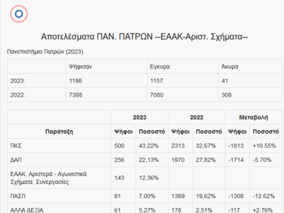 Βγαίνουν τα πρώτα αποτελέσματα των Φοιτητικών Εκλογών 2023 για το Πανεπιστήμιο Πατρών.