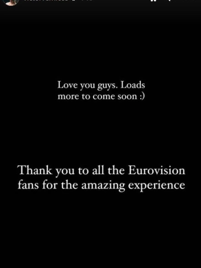 «Σας αγαπώ παιδιά. Σύντομα θα έρθουν πολλά περισσότερα. Ευχαριστώ όλους τους θαυμαστές της Eurovision για την καταπληκτική εμπειρία», έγραψε.