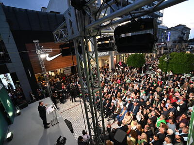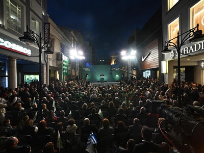 Η κεντρική εκδήλωση του κόμματος ολοκληρώθηκε με ομιλία του στον πεζόδρομο της Αγίου Νικολάου.