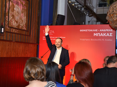 Περιστοιχιζόμενος από νέους ανθρώπους, της δικής του γενιάς, συγκινημένος από την εντυπωσιακή ανταπόκριση στο κάλεσμα στου, και μέσα σε μια εγκάρδια και θερμή ατμόσφαιρα, ιδιαίτερα υποστηρικτική της υποψηφιότητας του, ο Θεμιστοκλής –Ανδρέας Μπάκας προέτρεψε για την έλευση της προοδευτικής διακυβέρνησης, στις 21 Μάϊου, τονίζοντας: «Οι Αχαιοί αποφάσισαν, ο ΣΥΡΙΖΑ – ΠΣ θα είναι πρώτο κόμμα και ο Αλέξης Τσίπρας Πρωθυπουργός! Πάμε με τη νίκη για τη μεγάλη πολιτική αλλαγή - πολιτική αναγέννηση!