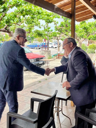 "Ο Αχαιός βουλευτής, συναντήθηκε με στελέχη της Νέας Δημοκρατίας και τους κατοίκους των χωριών και ζήτησε τη στήριξη τους στις προσεχείς βουλευτικές εκλογές 21ης Μαΐου 2023.