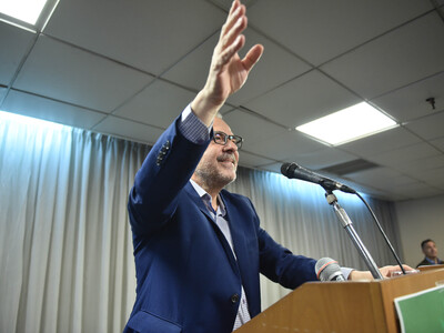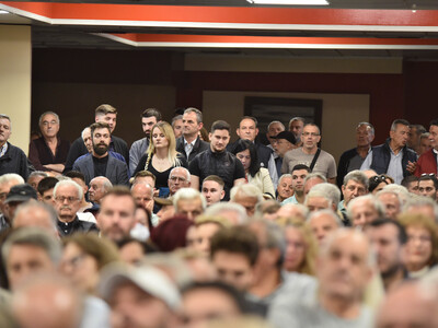 Ένα πολυπληθές ακροατήριο, που δεν μπόρεσε να χωρέσει στην αίθουσα, τον υποδέχθηκε θερμά και τον άκουσε να αναπτύσσει ένα πλήρες πολιτικό σκεπτικό για την εκλογική αναμέτρηση της Κυριακής.