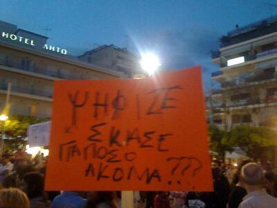 Αυτή τη φορά έκαναν την εμφάνιση τους plakat το περιεχόμενο των οποίων γράφτηκε αυθόρμητα εκείνη την ώρα από πολίτες που ήταν παρόντες.Στη συνέχεια ακούστηκαν συνθήματα ενώ μετά τις 10 οι συγκεντρωμένοι αποχώρησαν ανανεώνοντας το ραντεβού τους για σήμερα Παρασκευή πάλι στις 8 μ.μ.