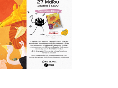 Το βιβλιοπωλείο Discover, ο Βρεφονηπιακός Σταθμός- Νηπιαγωγείο «Κατερίνα Γεώρμα» και οι Εκδόσεις Πατάκη σας προσκαλούν το Σάββατο 27 Μαΐου στις 12:00 μ. στην παρουσίαση βιβλίου του Βαγγέλη Ηλιόπουλου σε εικονογράφηση Φραντσέσκα Κοζάντι «Σπίτι όλων μας η Γη» φωνάζει ο Μπουλουμπίνος, παντού να ακουστεί!