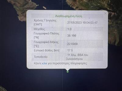 Να σημειωθεί πως με το ίδιο επίκεντρο έγινε στις 6.22 το πρωΐ σεισμική δόνηση 3.1 Ρίχτερ