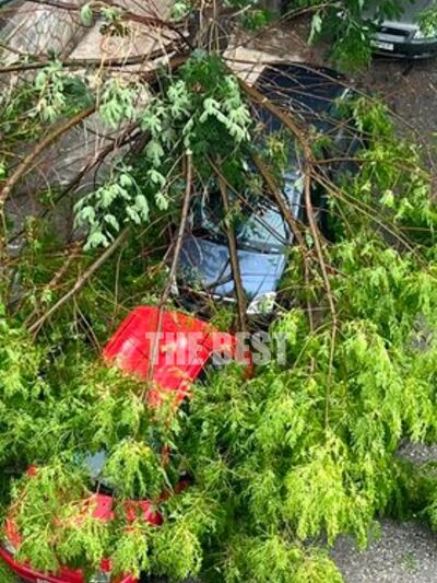 Ο κορμός έπεσε πάνω σε δύο αυτοκίνητα.