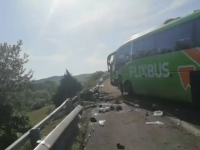 Όπως μεταδίδουν τα ιταλικά ΜΜΕ, στον αυτοκινητόδρομο Α16 έγινε ένα τροχαίο ατύχημα μεταξύ τριών αυτοκινήτων, με αποτέλεσμα να χάσει τη ζωή του ακαριαία ένας οδηγός. Το προπορευόμενο λεωφορείο με 38 επιβάτες -που είχε αναχωρήσει από το Λέτσε στις 11 το βράδυ του Σαββάτου (03.06.2023) με προορισμό τη Ρώμη στις 7 το πρωί – έπεσε πάνω σε ένα από τα ακινητοποιημένα οχήματα, με αποτέλεσμα να ανατραπεί και να πέσει σε γκρεμό.