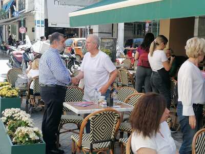 Το πρωί της Τρίτης 6 Ιουνίου κλιμάκιο του ΣΥΡΙΖΑ Προοδευτική Συμμαχία Αχαΐας και της Νεολαία Σύριζα Αχαΐας με τη συμμετοχή των υποψηφίων Βουλευτριών Σίας Αναγνωστοπούλου και Μαρίας Στέφου και των υποψηφίων Βουλευτών Ανδρέα Παναγιωτόπουλου και Γιώργου Κυριακόπουλου πραγματοποίησε μαζική εξόρμηση στα καταστήματα εστίασης των οδών Ρήγα Φεραίου, Κανάρη και στην πλατεία Γεωργίου.